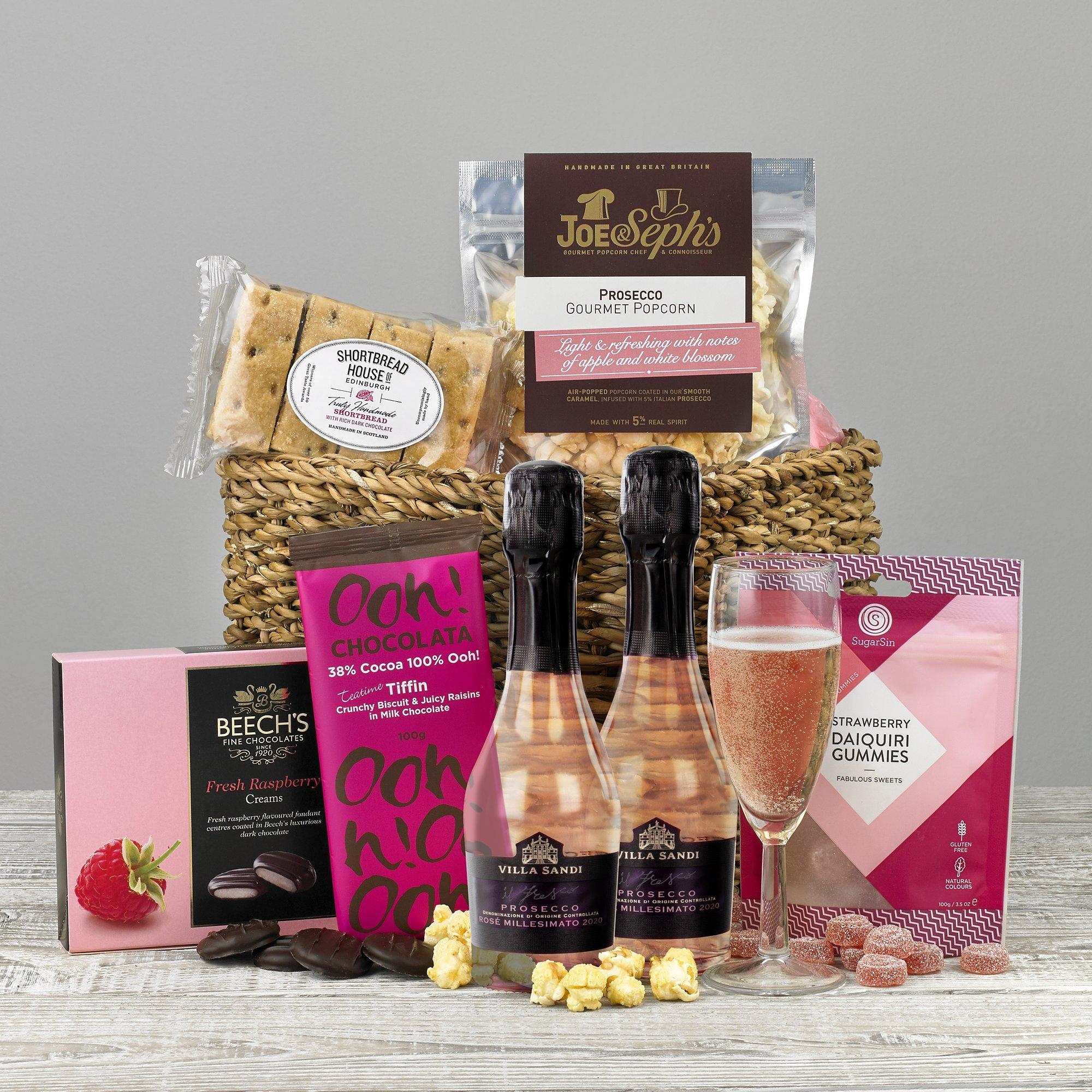 This Gift Includes The Very Best Of Everything They Ll Be Able To Sit Back And Savour A Chilled Glass Of Spark Wine Gift Baskets Congratulations Flowers Gifts